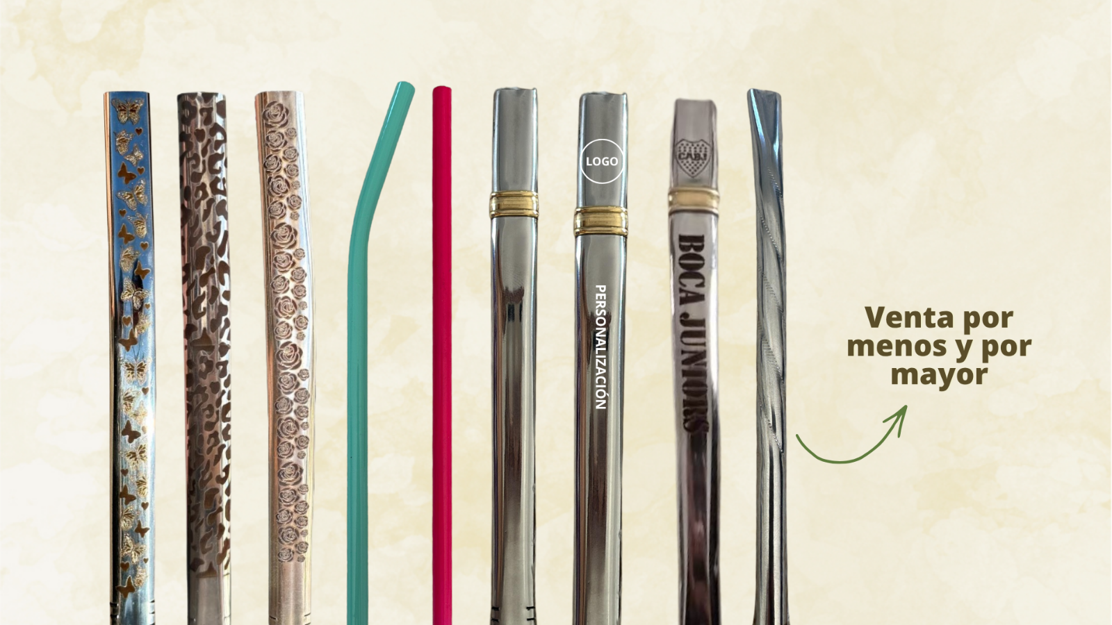 Hoy ofrecemos bombillas, vasos, mates, portarrollos y sorbetes en aluminio y acero inoxidable, orientados a merchandising, eventos y productos personalizados.